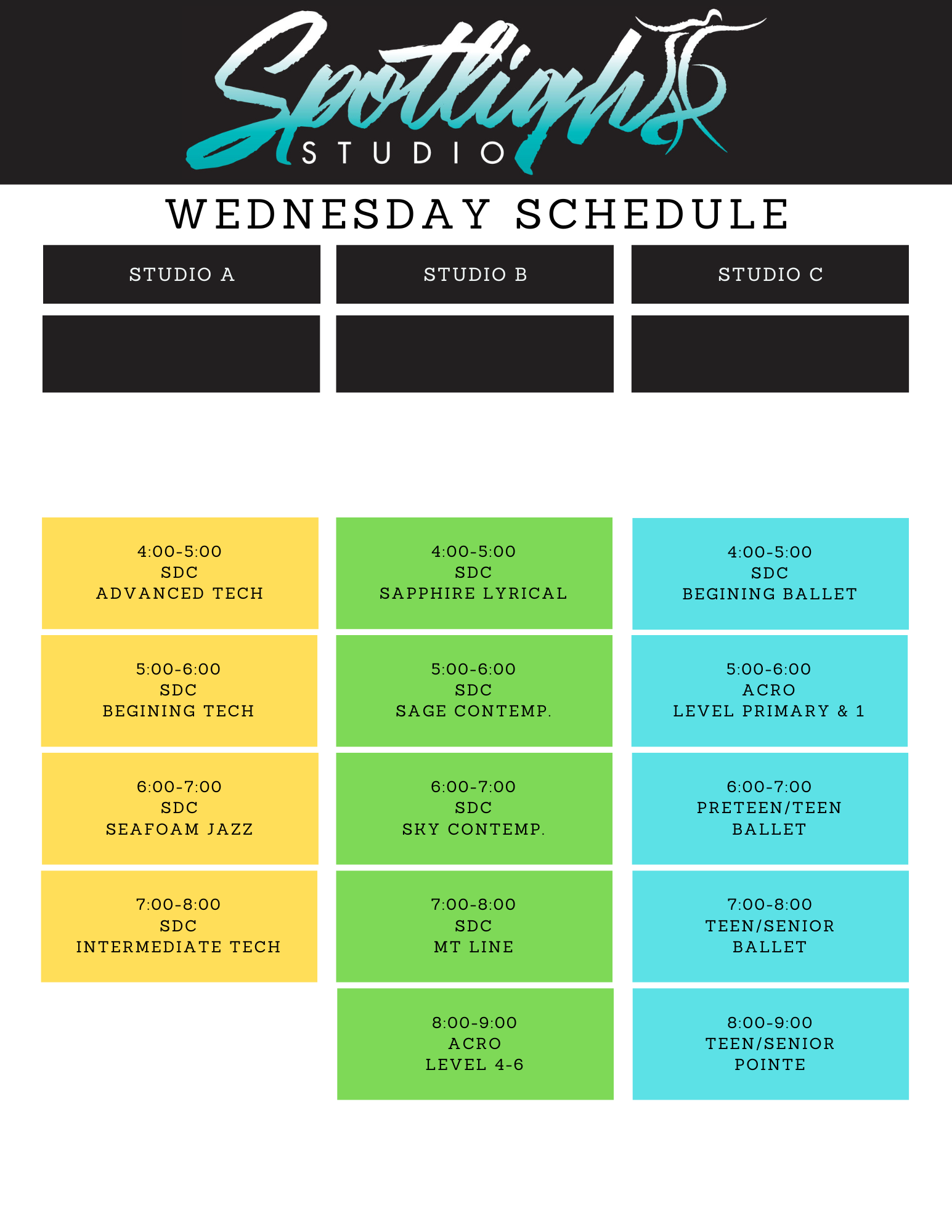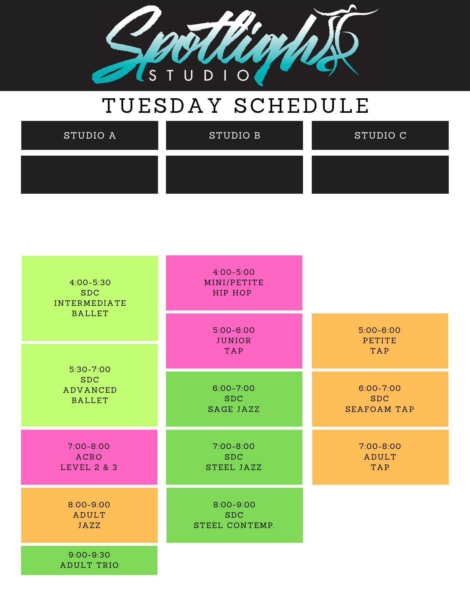 * days and times are subject to change depending on class size *